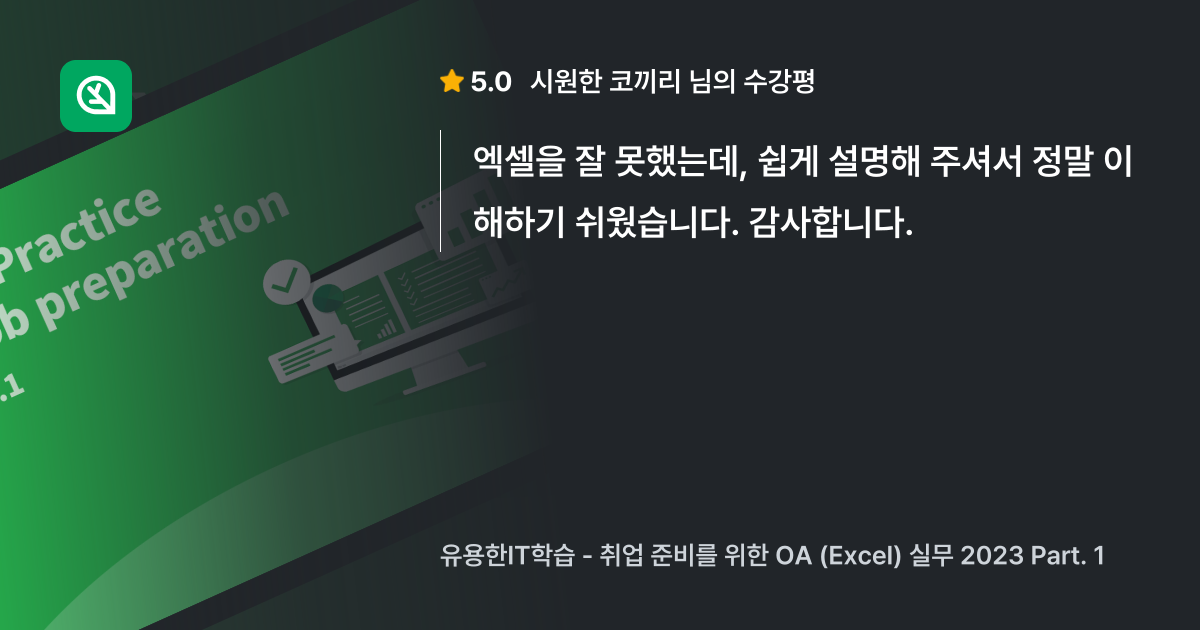 sn님의 생생한 수강평, 취업 준비를 위한 OA (Excel) 실무 2023 ... - 인프런 | 수강평