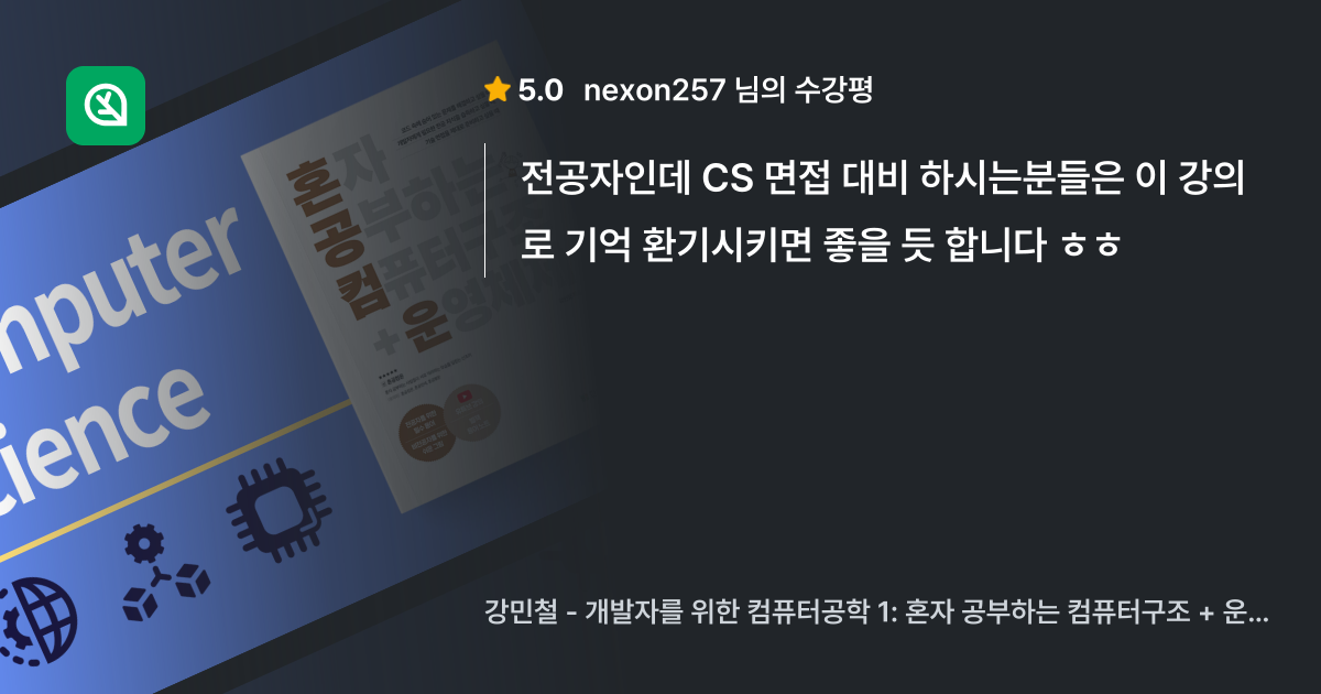 nexon257님의 생생한 수강평, 개발자를 위한 컴퓨터공학 1: 혼자 공부하... - 인프런 | 수강평