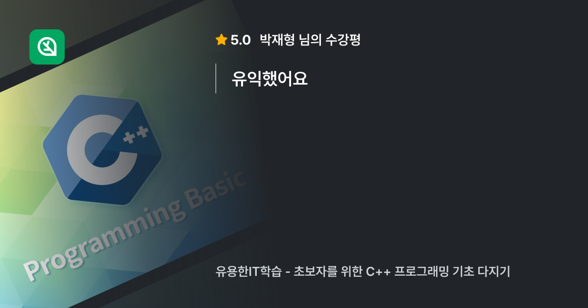 박재형님의 생생한 수강평, 초보자를 위한 C++ 프로그래밍 기초 다지기 - 인프런 | 수강평