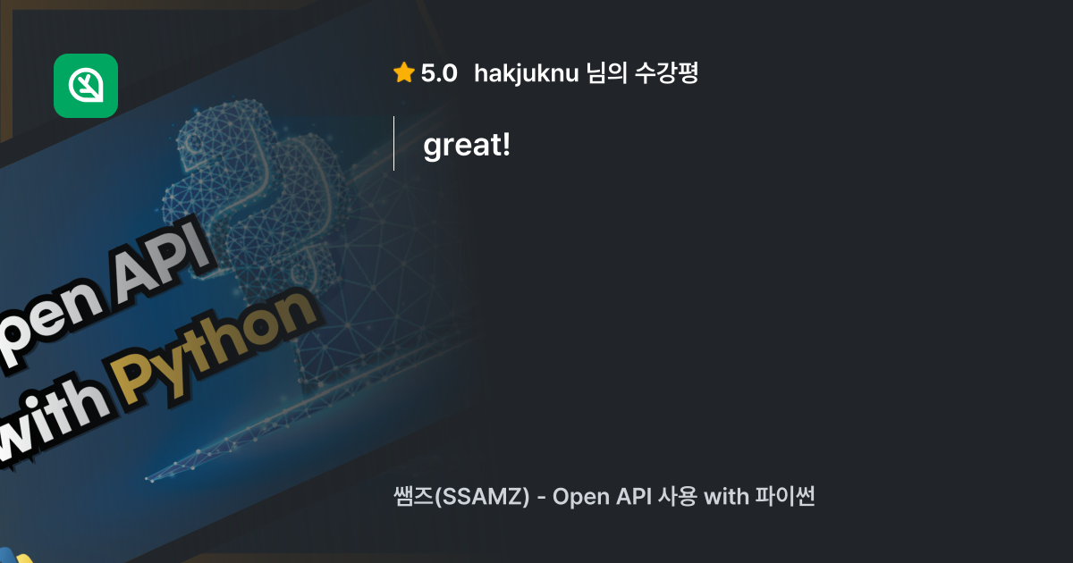 hakjuknu님의 생생한 수강평, Open API 사용 with 파이썬 - 인프런 | 수강평