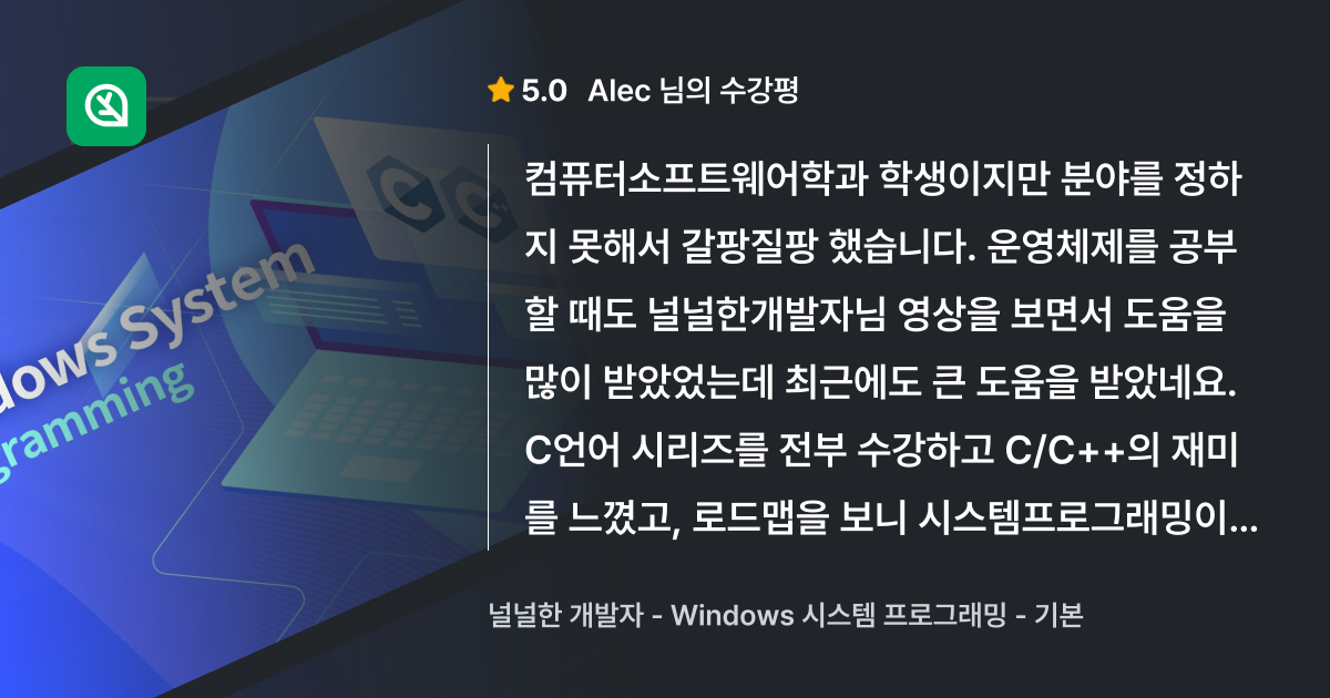 Love C/C++님의 생생한 수강평, Windows 시스템 프로그래밍 - 기... - 인프런 | 수강평