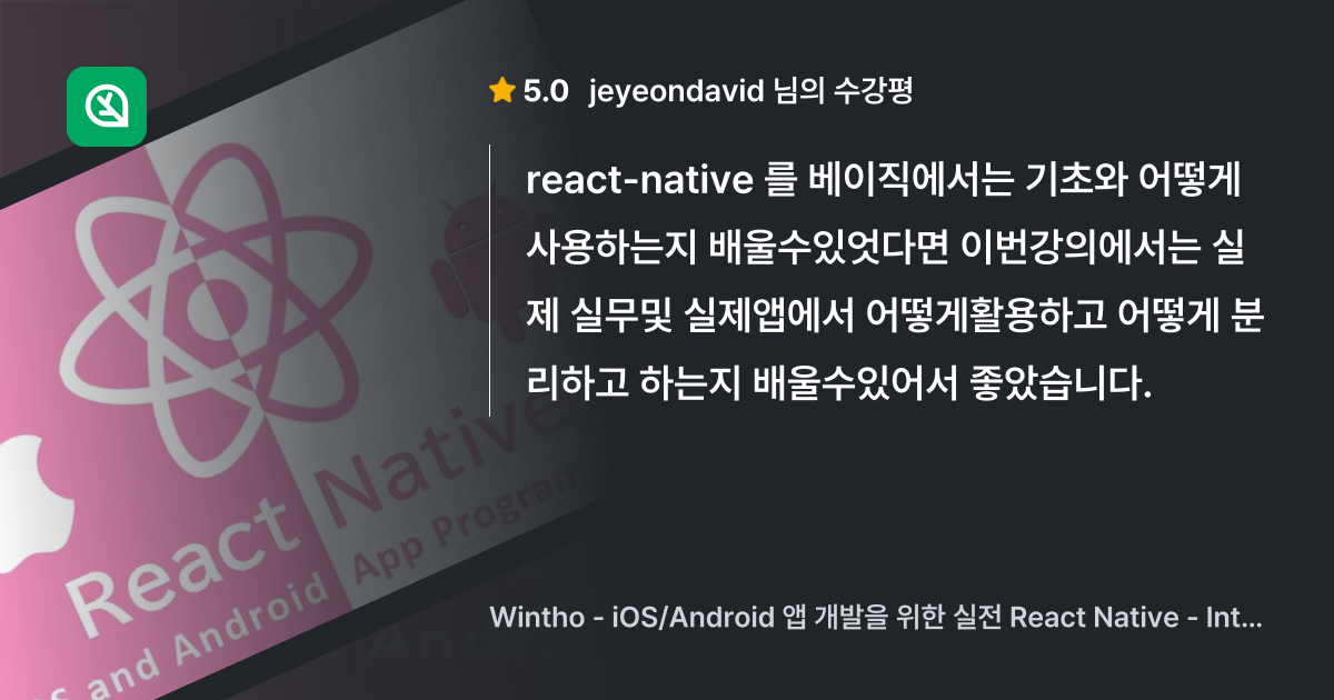 jeyeondavid님의 생생한 수강평, iOS/Android 앱 개발을 위한... - 인프런 | 수강평