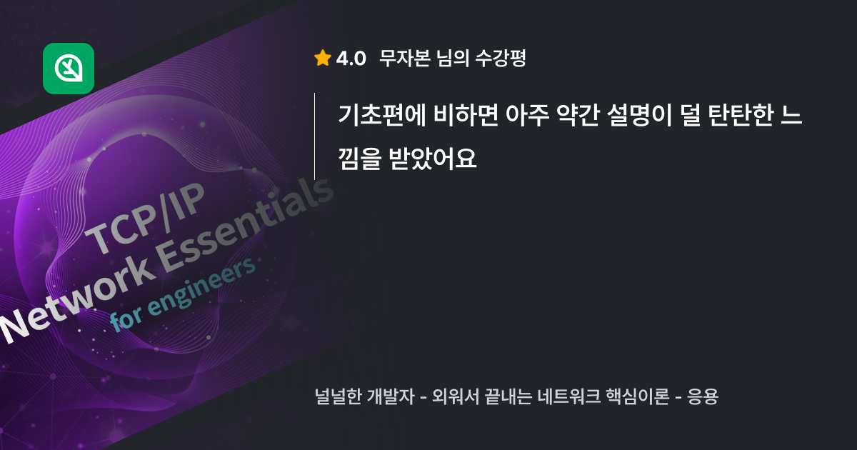 무자본님의 생생한 수강평, 외워서 끝내는 네트워크 핵심이론 - 응용 - 인프런 | 수강평