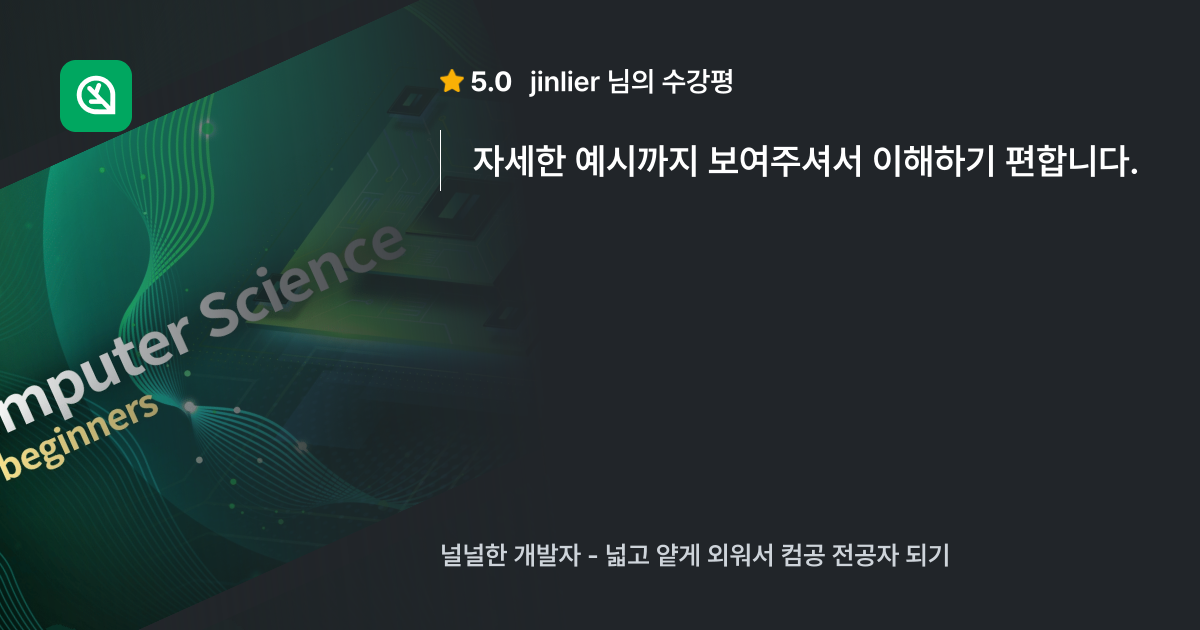 jinlier님의 생생한 수강평, 넓고 얕게 외워서 컴공 전공자 되기 - 인프런 | 수강평