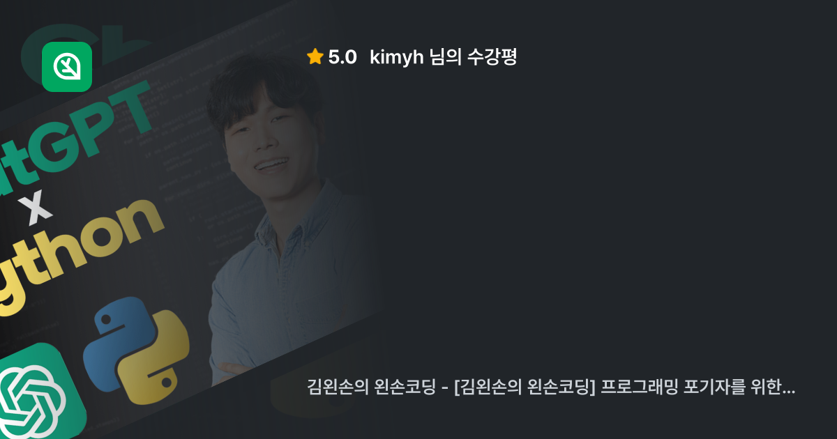 kimyh님의 생생한 수강평, [김왼손의 왼손코딩] 프로그래밍 포기자를 위한 ... - 인프런 | 수강평
