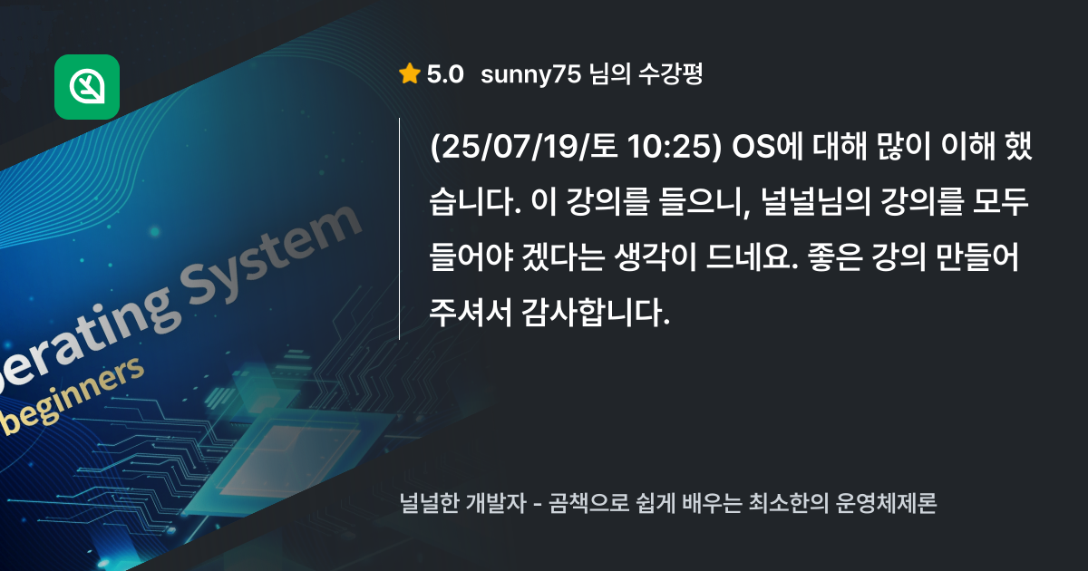 sunny75님의 생생한 수강평, 곰책으로 쉽게 배우는 최소한의 운영체제론 - 인프런 | 수강평