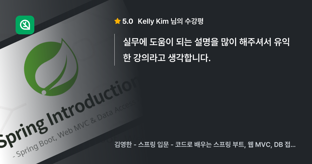 Kelly Kim님의 생생한 수강평, 스프링 입문 - 코드로 배우는 스프링 부... - 인프런 | 수강평