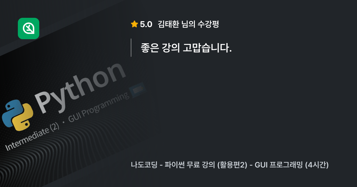 김태환님의 생생한 수강평, 파이썬 무료 강의 (활용편2) - GUI 프로그래밍... - 인프런 | 수강평