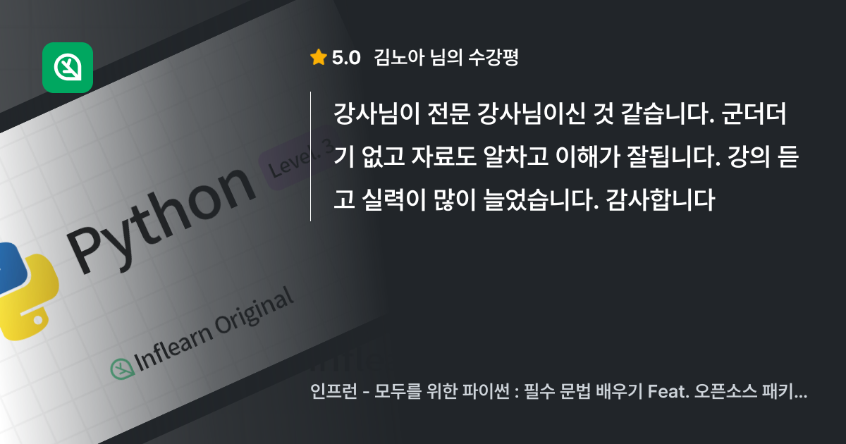 김노아님의 생생한 수강평, 모두를 위한 파이썬 : 필수 문법 배우기 Feat.... - 인프런 | 수강평