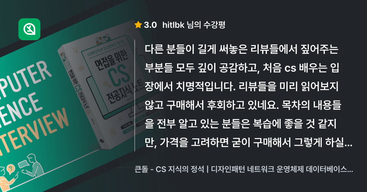 hitlbk님의 생생한 수강평, CS 지식의 정석 | 디자인패턴 네트워크 운영... - 인프런 | 수강평