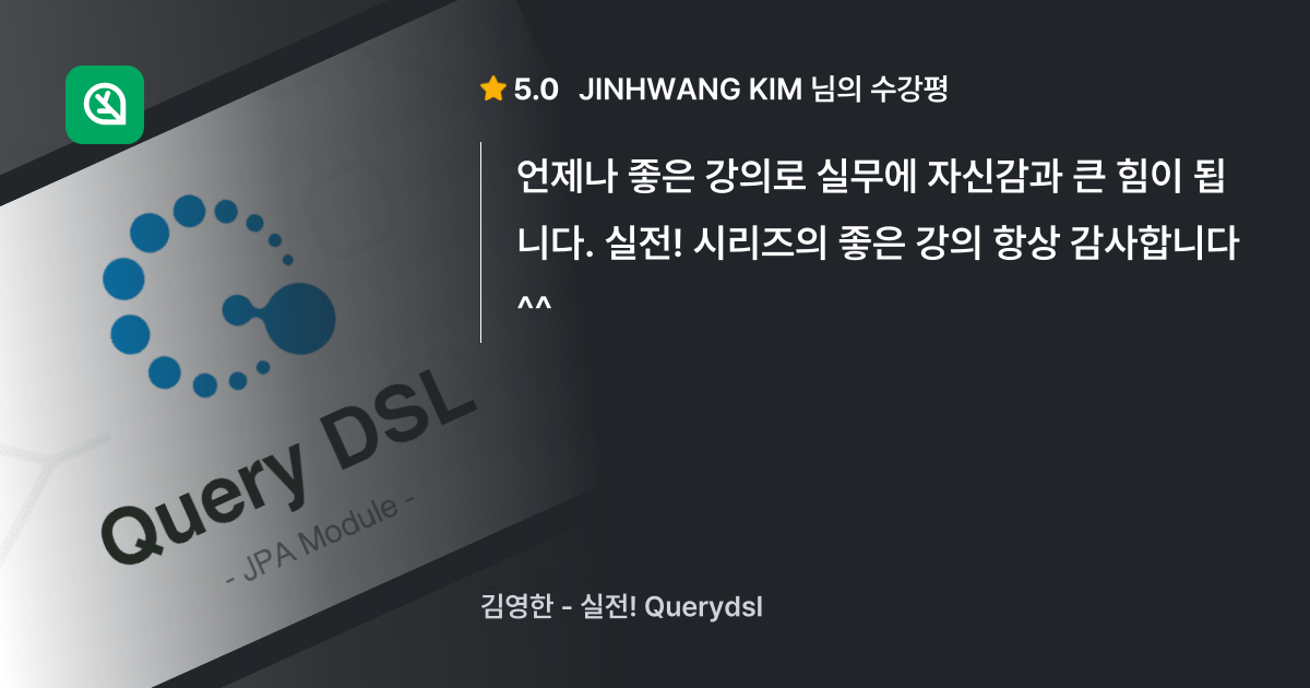 JINHWANG KIM님의 생생한 수강평, 실전! Querydsl - 인프런 | 수강평