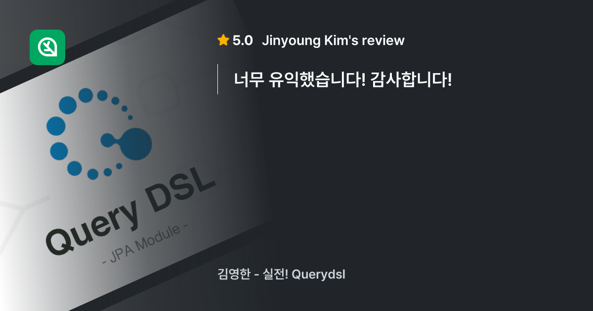 Jinyoung Kim님의 생생한 수강평, 실전! Querydsl - 인프런 | 수강평