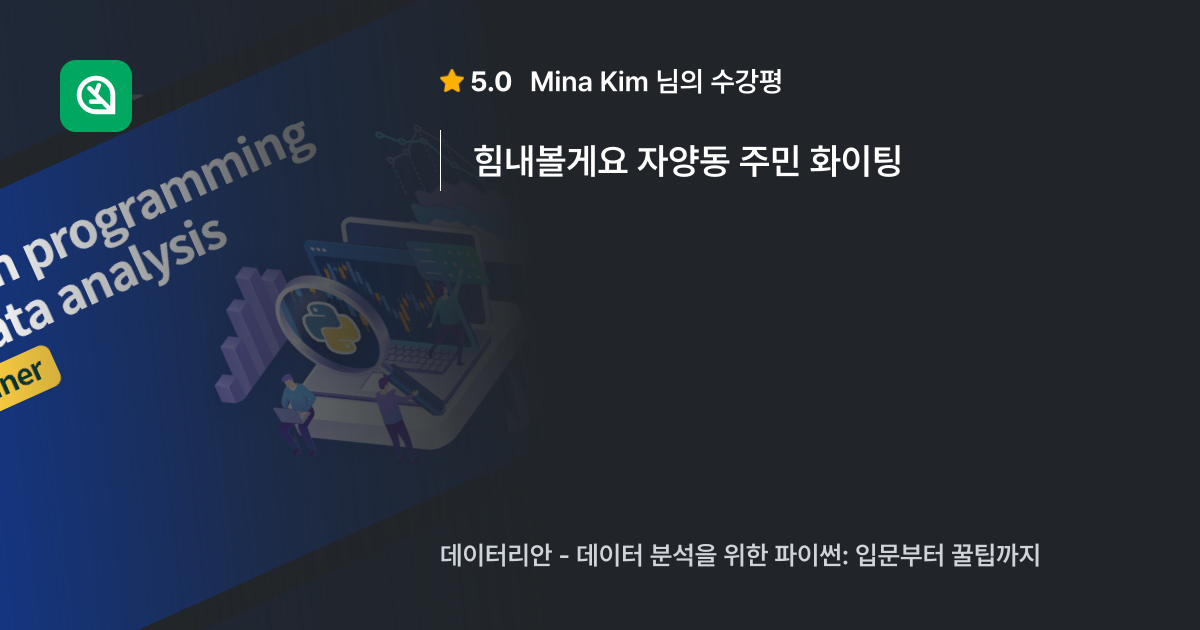 Mina Kim님의 생생한 수강평, 데이터 분석을 위한 파이썬: 입문부터 꿀팁... - 인프런 | 수강평