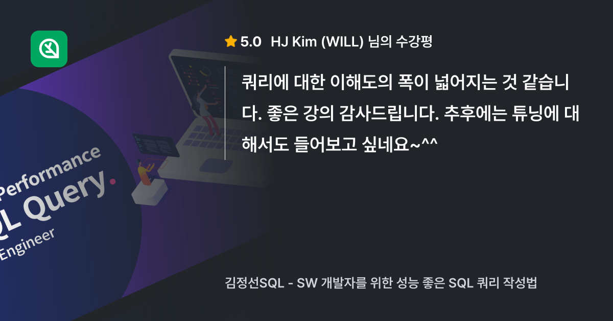 HJ Kim (WILL)님의 생생한 수강평, SW 개발자를 위한 성능 좋은 S... - 인프런 | 수강평