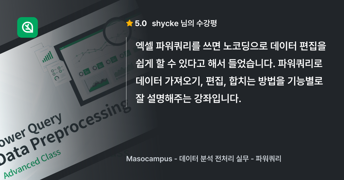 shycke님의 생생한 수강평, 데이터 분석 전처리 실무 - 파워쿼리 - 인프런 | 수강평