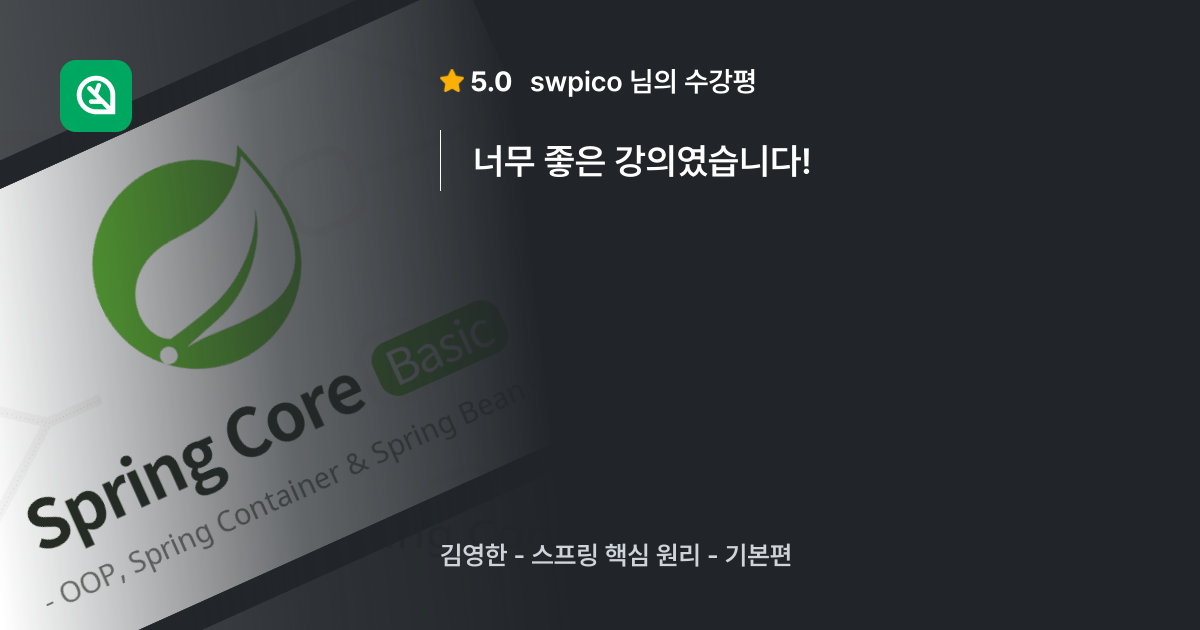 swpico님의 생생한 수강평, 스프링 핵심 원리 - 기본편 - 인프런 | 수강평