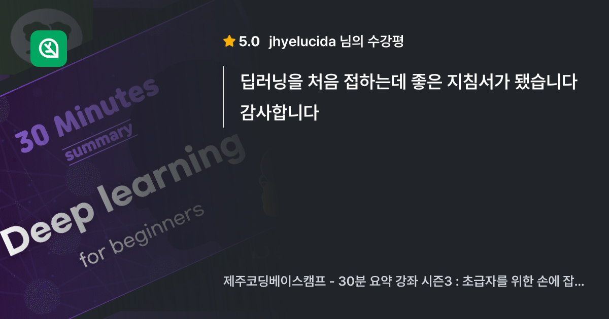 jhyelucida님의 생생한 수강평, 30분 요약 강좌 시즌3 : 초급자를 ... - 인프런 | 수강평