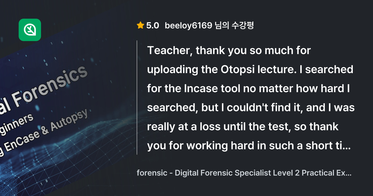 beeloy님의 생생한 수강평, 디지털포렌식 입문자를 위한 디지털포렌식 전문가... - 인프런 | 수강평