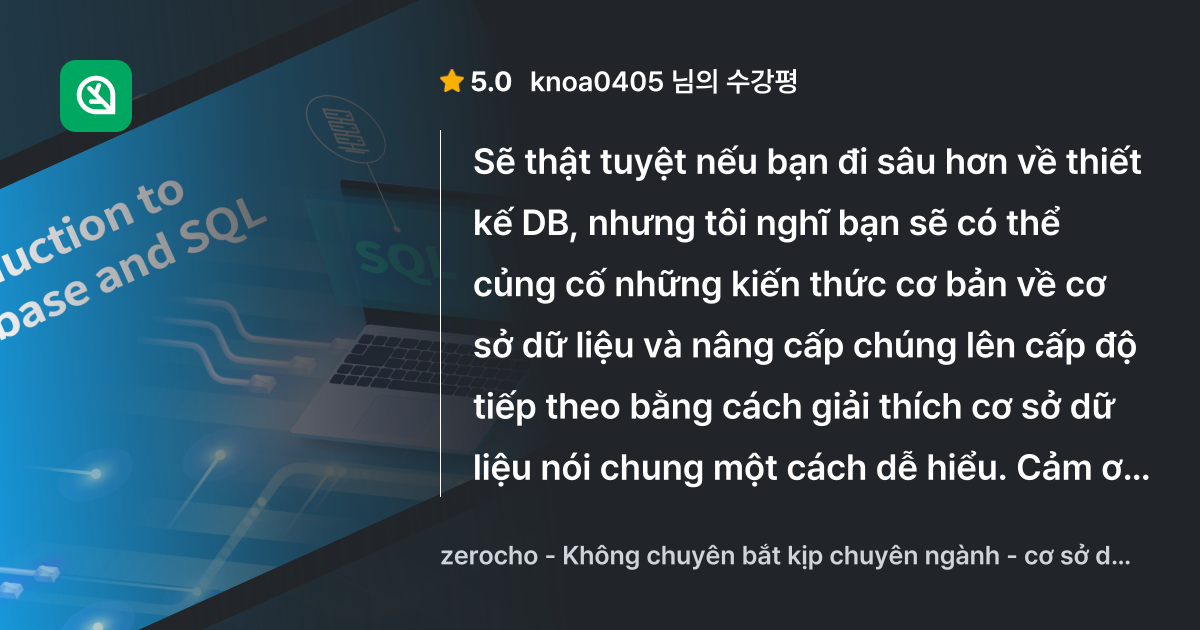 sanghee.kim님의 생생한 수강평, 데이터베이스의 정석 - 기초와 실무편 - 인프런 | 수강평