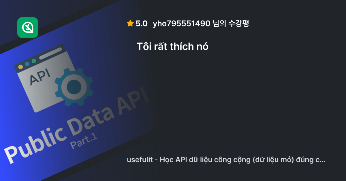yho79555님의 생생한 수강평, 공공 데이터 (오픈 데이터) API 제대로... - 인프런 | 수강평
