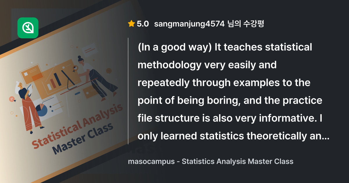 굴삭기님의 생생한 수강평, 통계 분석 마스터 클래스 강의 - 인프런 | 수강평