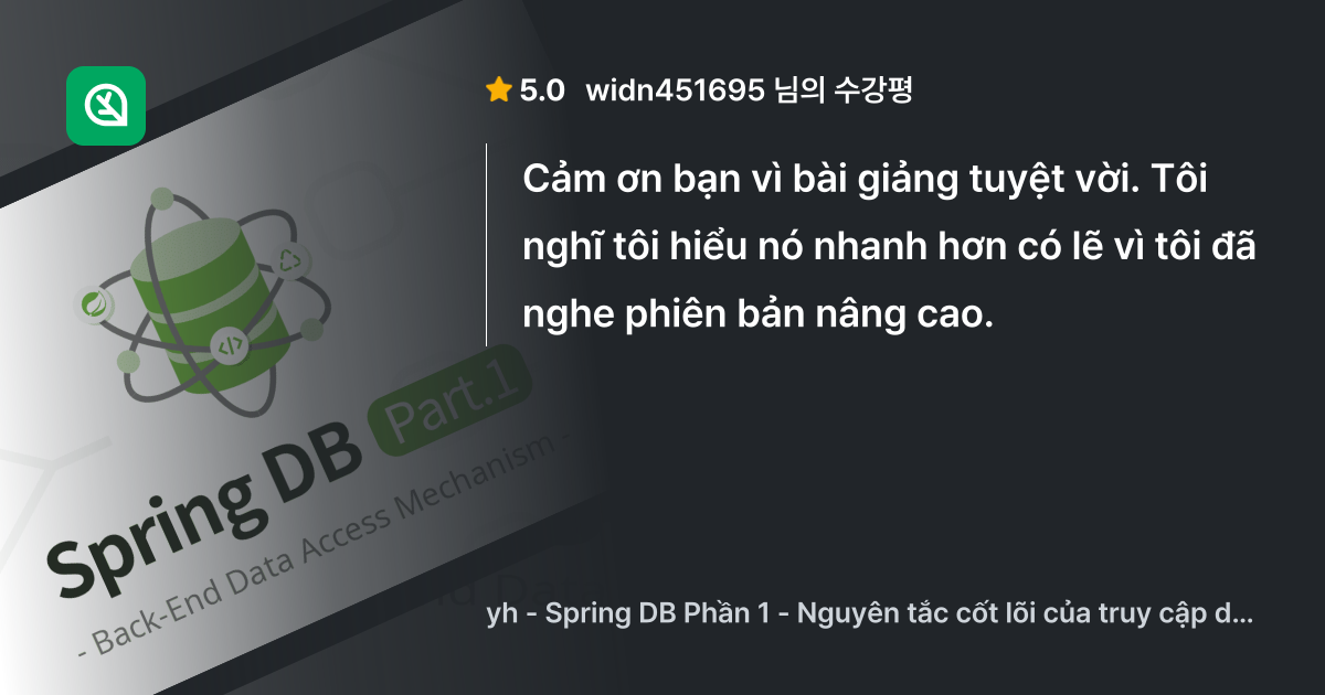 widn45님의 생생한 수강평, 스프링 DB 1편 - 데이터 접근 핵심 원리 ... - 인프런 | 수강평