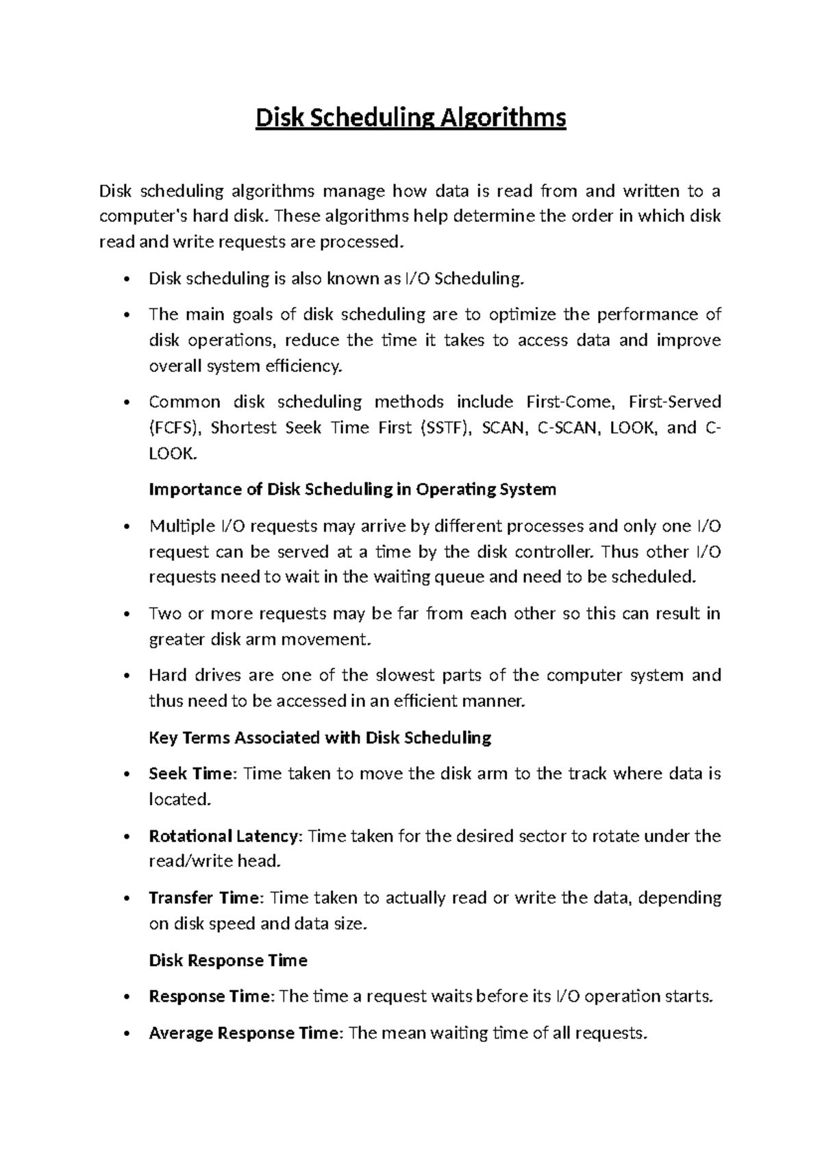Disk Scheduling Algorithms: Overview and Key Techniques - Studocu