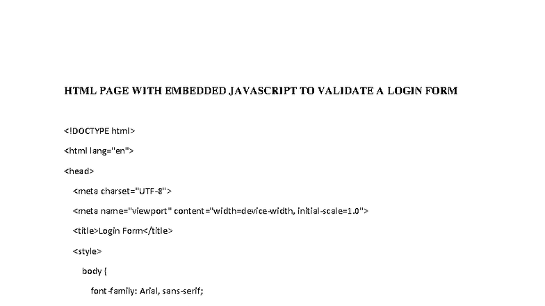 HTML Login Form Validation with Embedded JavaScript - Studocu