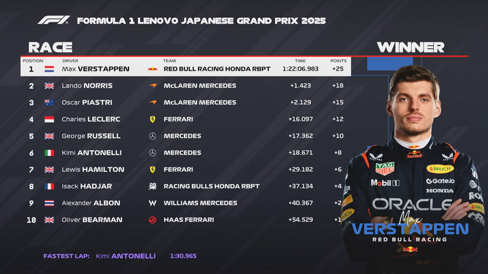 Japanese Grand Prix 2025: Max Verstappen’s perfect win and Kimi ...