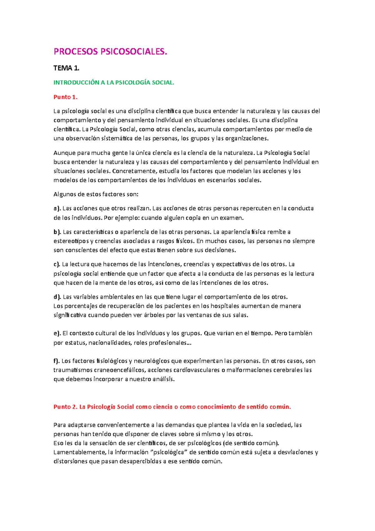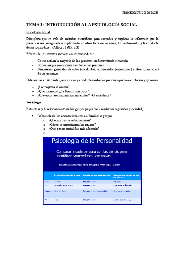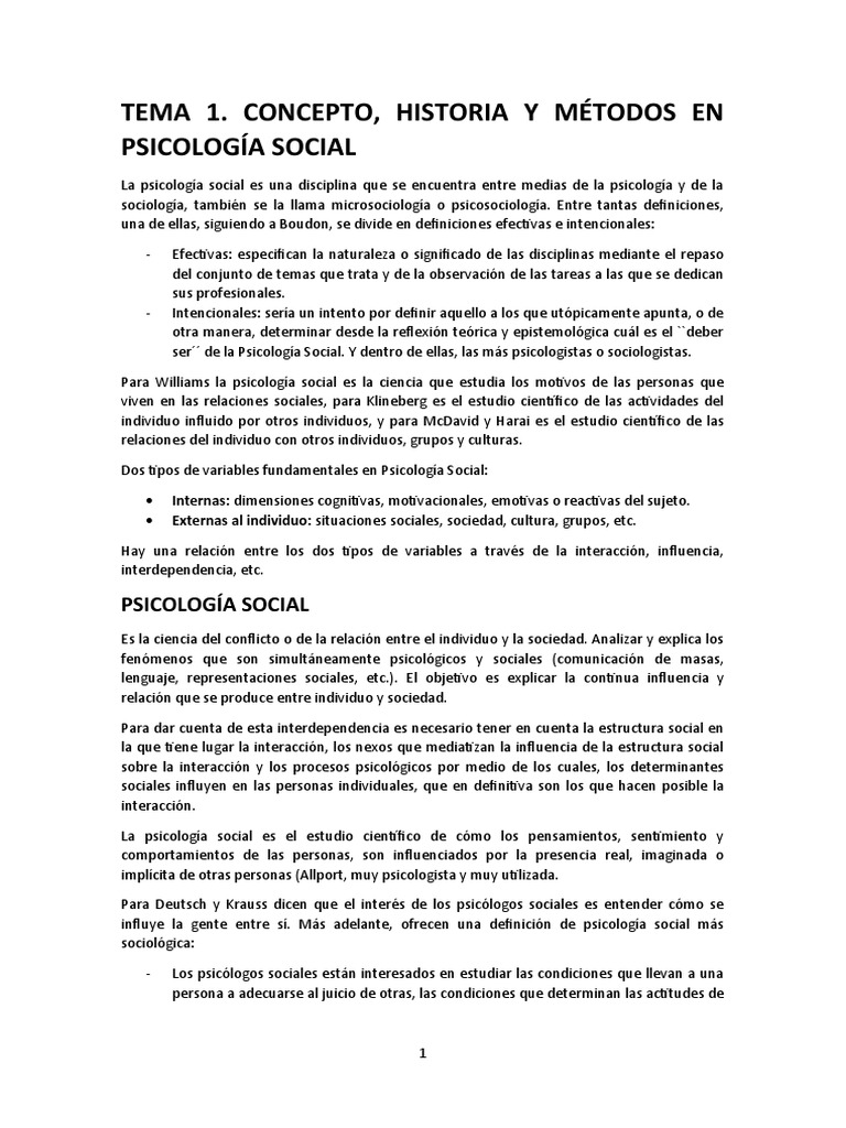 Apuntes Tema 1 de Psicología Social | PDF | Psicología Social | Sicología