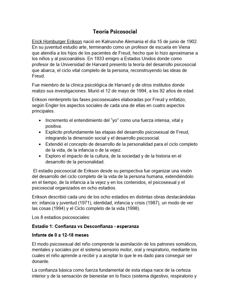 Etapas del Desarrollo Psicosocial de Erikson | PDF | Adultos | Ansiedad