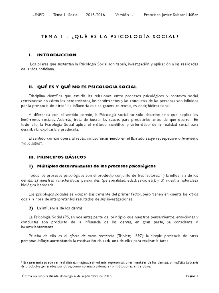 Psicología Social Tema 1 UNED | PDF | Psicología Social | Sicología