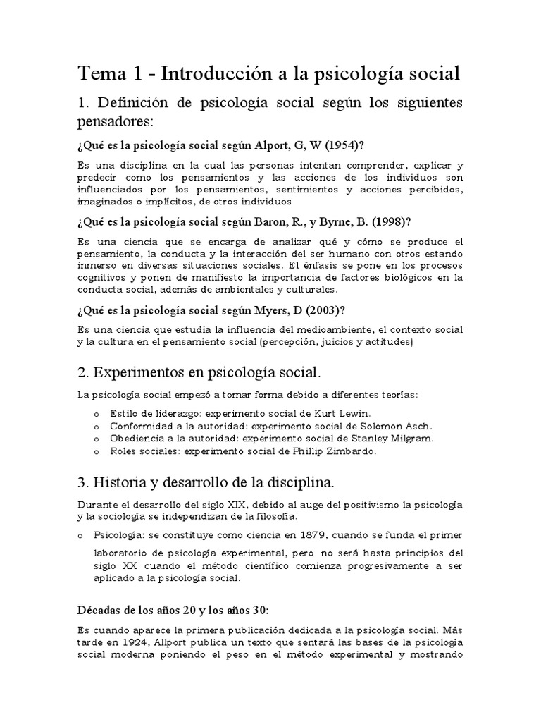 Free Tema 1 Psicologia Social | PDF | Sicología | Psicología Social