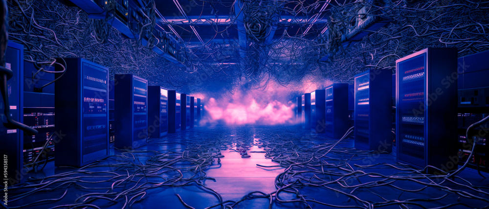 Illustration of AI taking over computer networks its code snaking ...