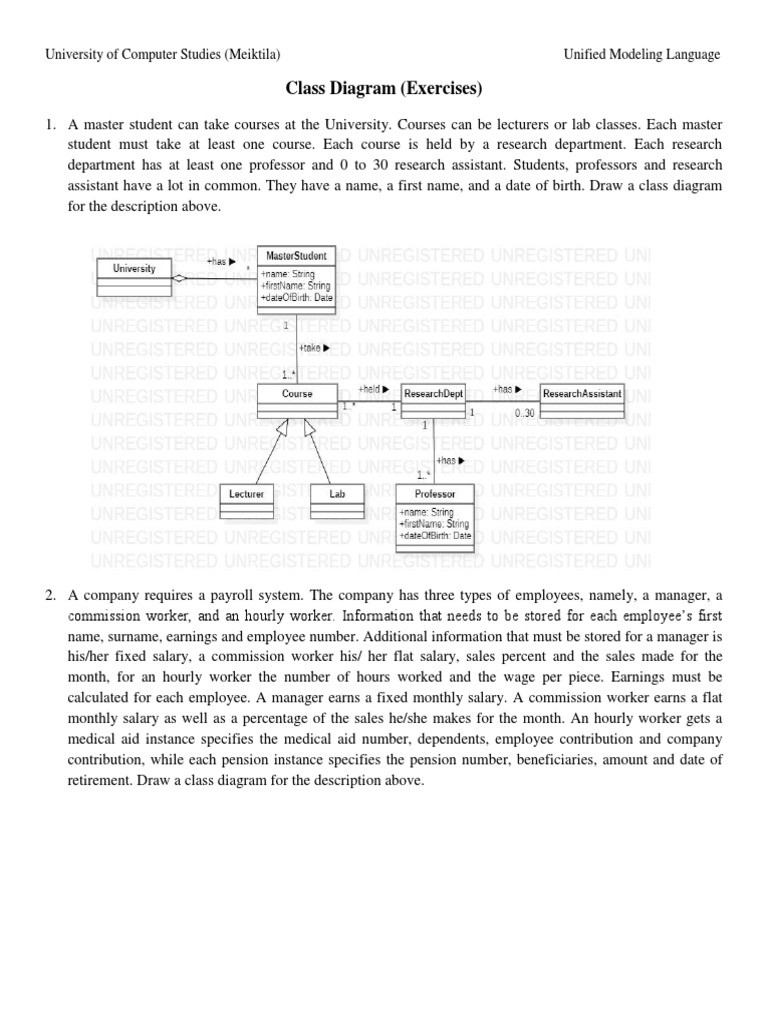 Class Diagrams Practice | PDF | Unified Modeling Language | Software ...