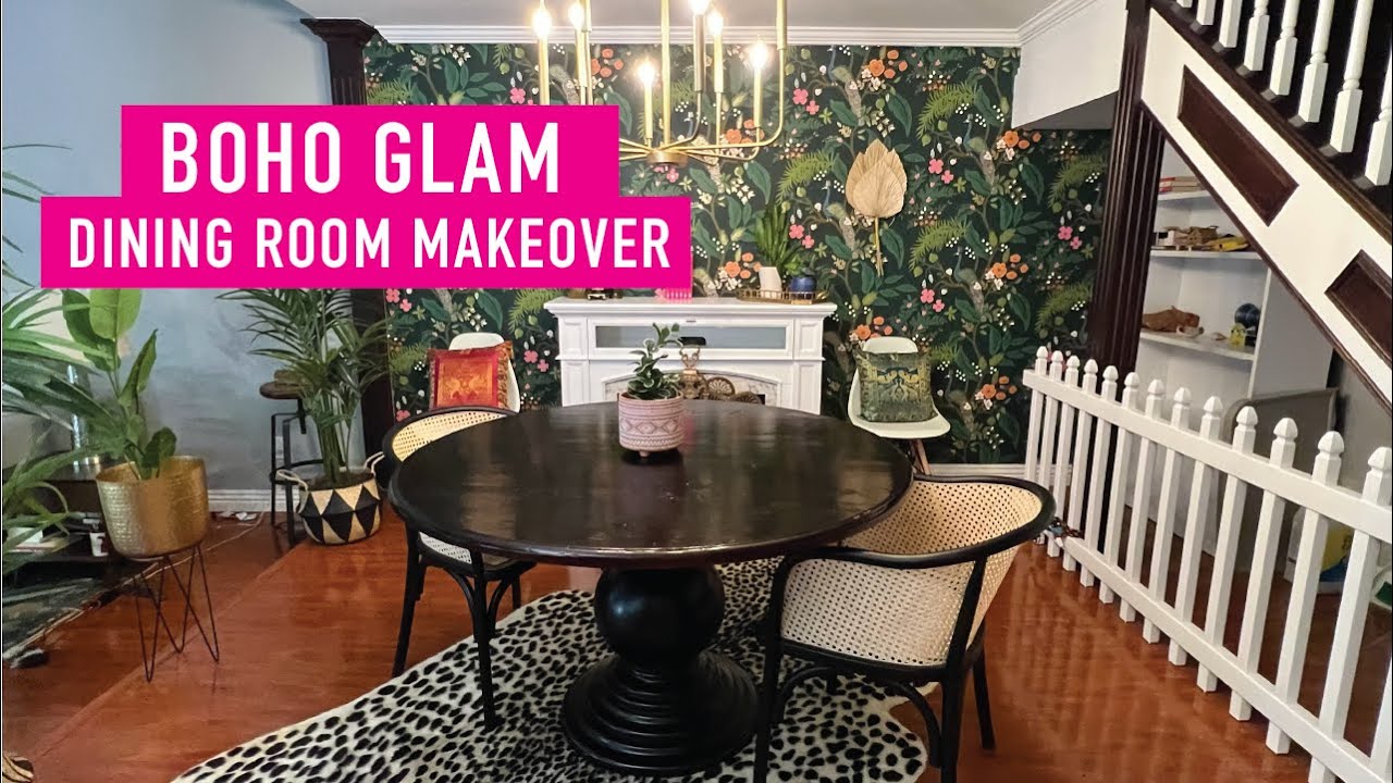 Design a boho glam maximalist dining room featuring Mary Lynn Rajskub