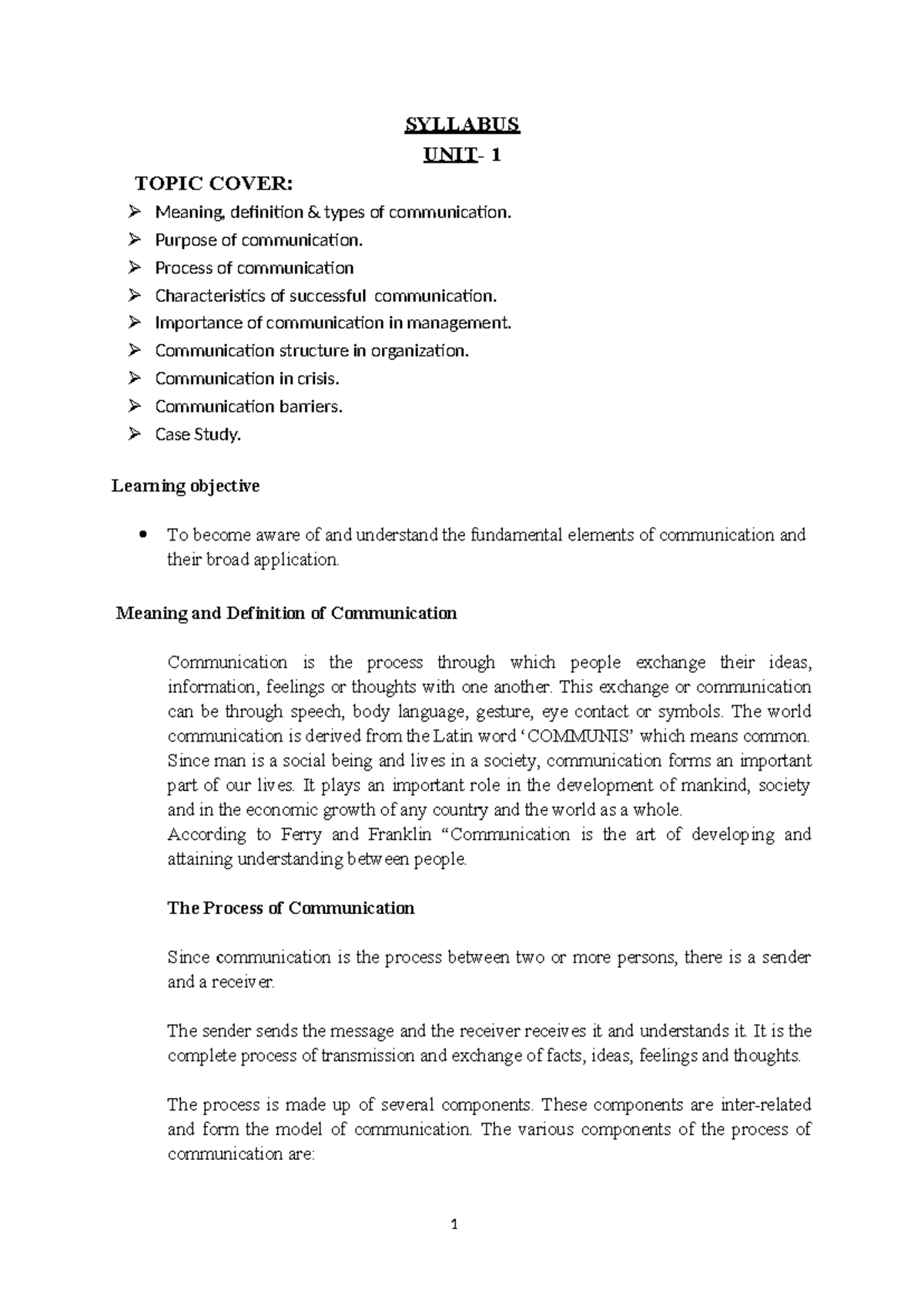 Notes on Communication for Managers: Understanding Key Concepts and ...