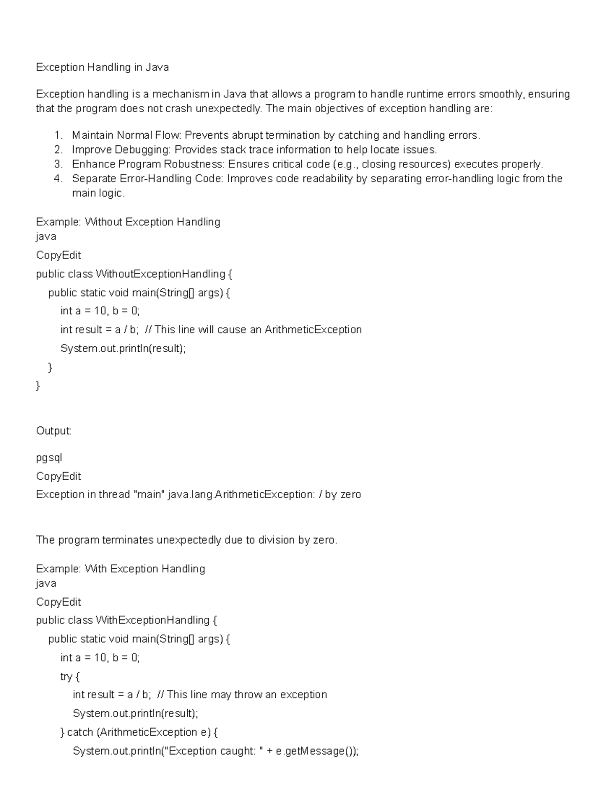 Java Exception Handling: Mechanisms, Types, and Best Practices - Studocu