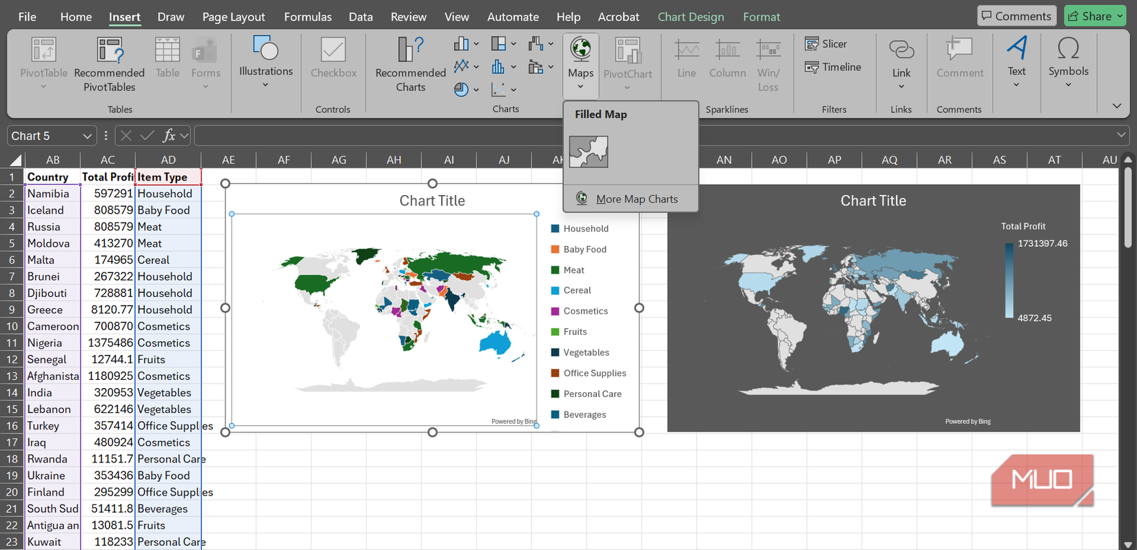 How to create a map chart in Excel