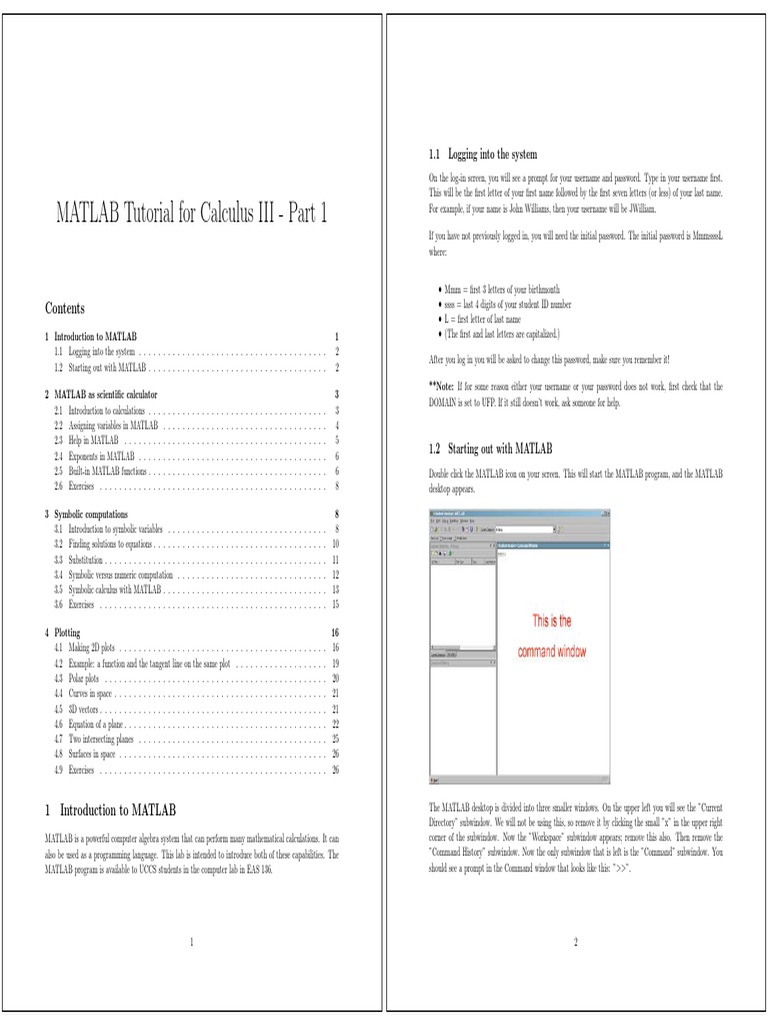 MATLAB Tutorial For Calculus III - Part 1: 1.1 Logging Into The System ...