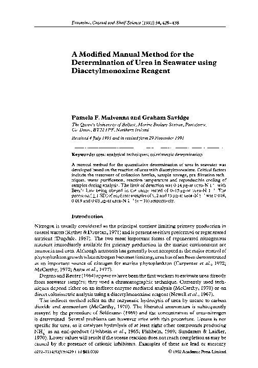 (PDF) Colorimetric determination of urea using diacetyl monoxime with ...
