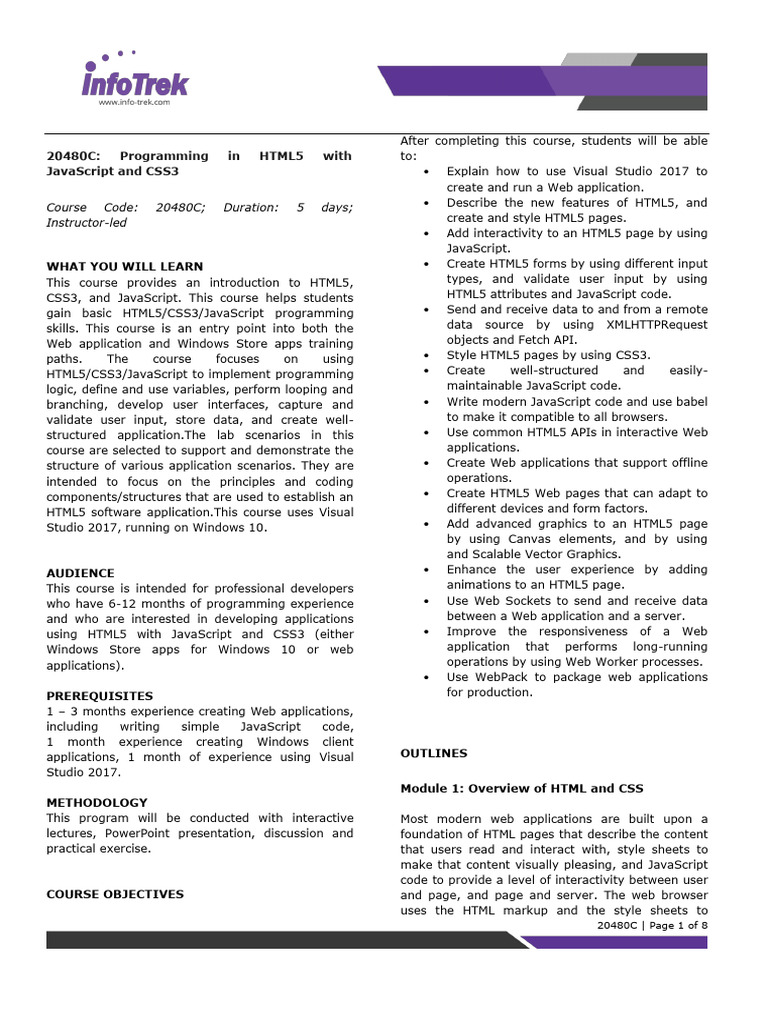 HTML5 & CSS3 Course Syllabus | PDF | Html Element | Html