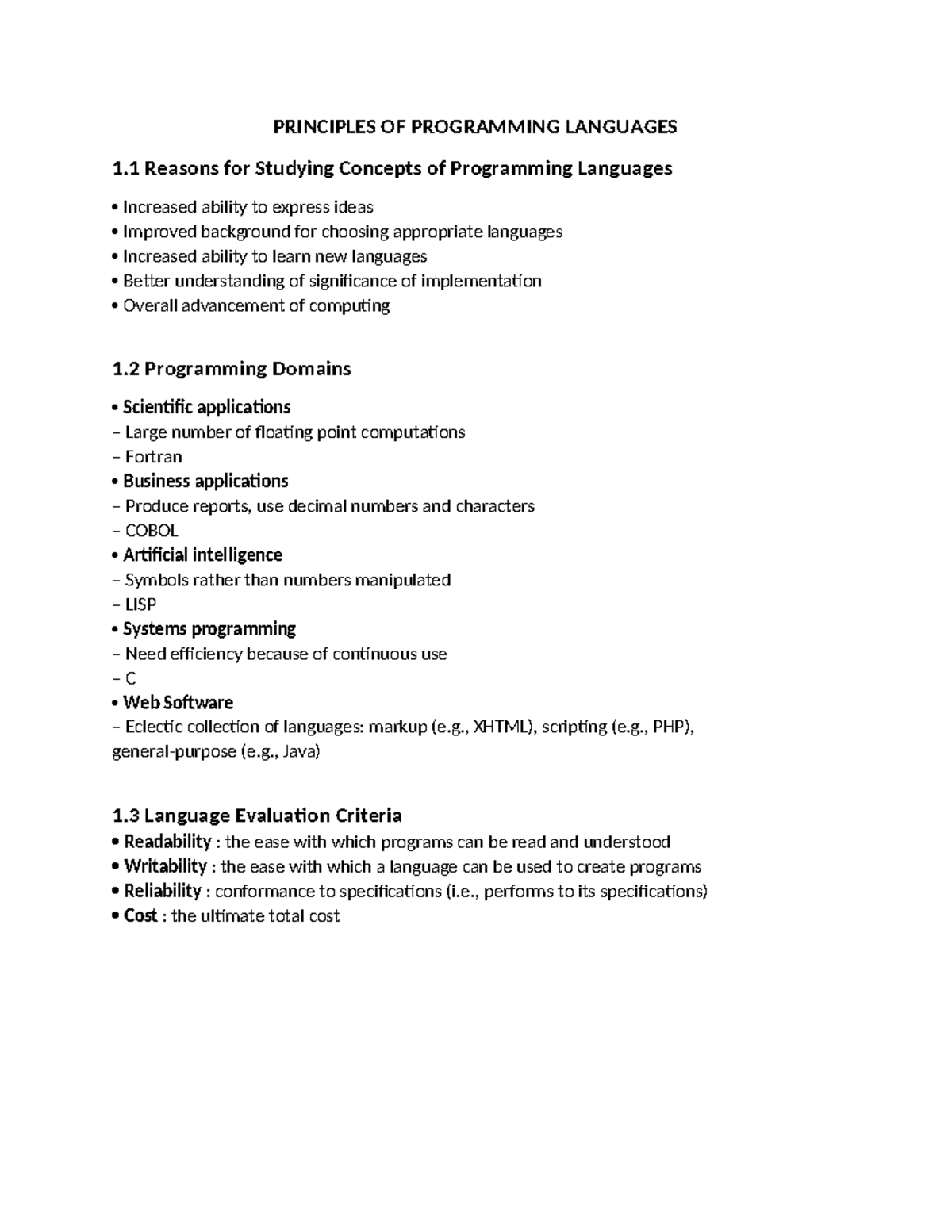 Principles of Programming Languages (CS101) Overview and Key Concepts ...