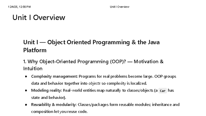 Java Programming Overview: Key Concepts and Technologies - Studocu