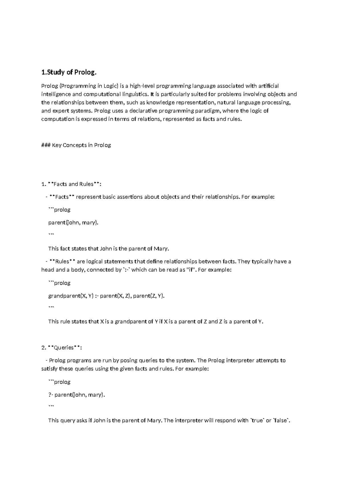 Prolog Programming Concepts and Applications (CS101) - Studocu