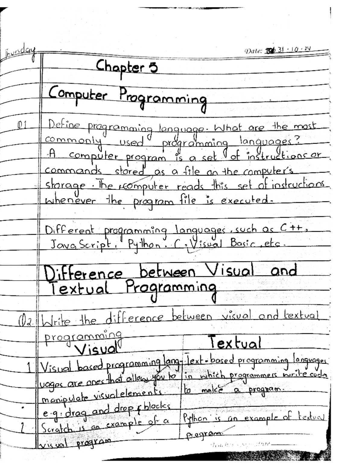 CS101 Chapter 5: Computer Programming Concepts and Features - Studocu