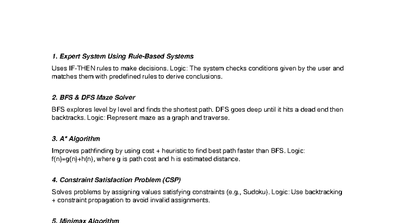 AI Practicals (CS101) Oral Exam Summary and Key Concepts - Studocu