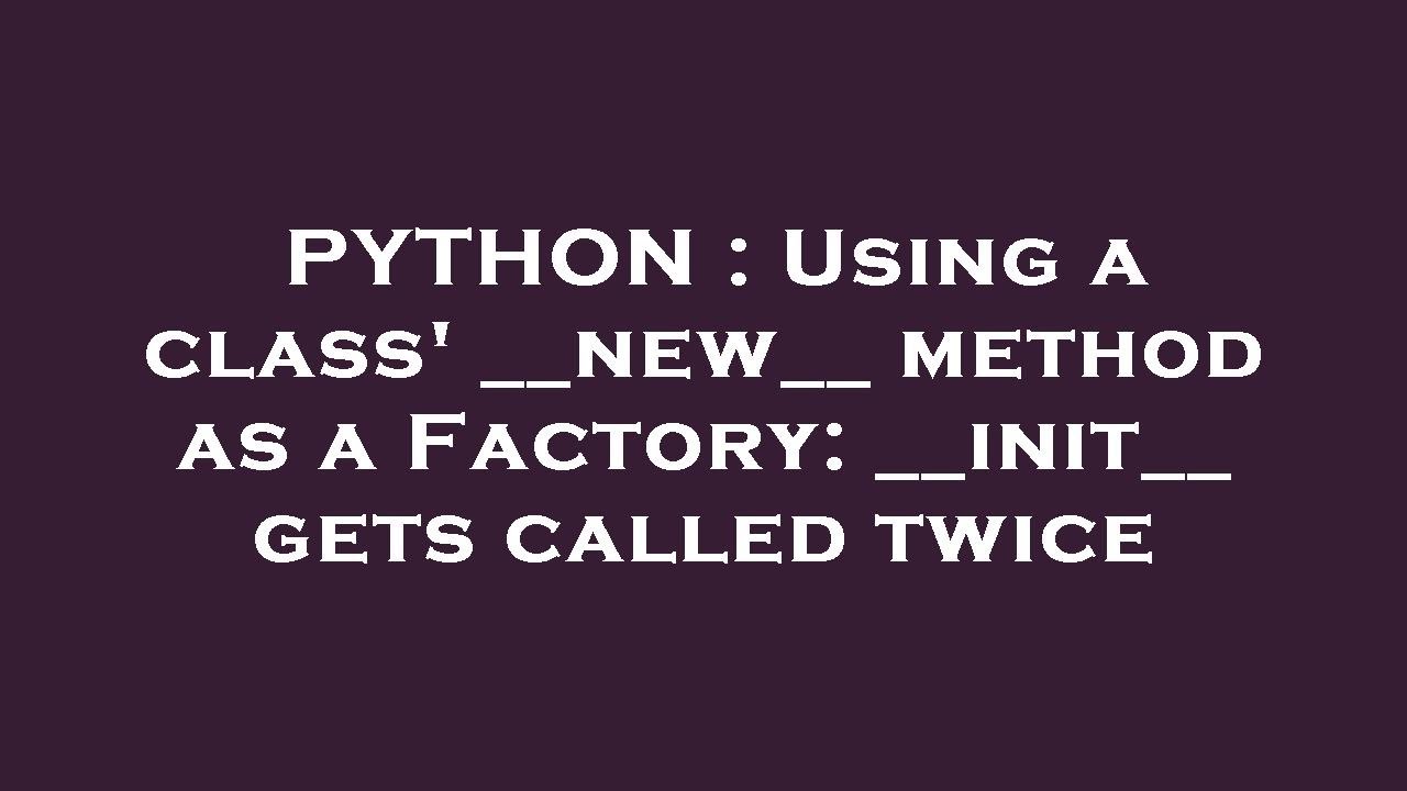 PYTHON : Using a class' __new__ method as a Factory: __init__ gets ...