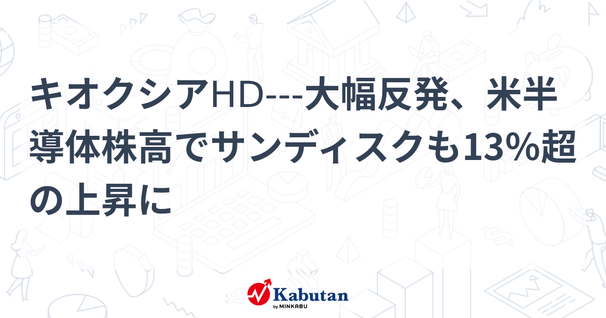 キオクシアHD---大幅反発、米半導体株高でサンディスクも13%超の上昇に | 個別株 - 株探ニュース