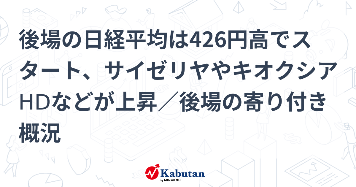 後場の日経平均は426円高でスタート、サイゼリヤやキオクシアHDなどが上昇/後場の寄り付き概況 | 市況 - 株探ニュース